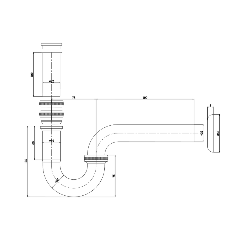 Parametry produktu  Umyvadlový sifon 5/4", odpad 32mm, chrom
