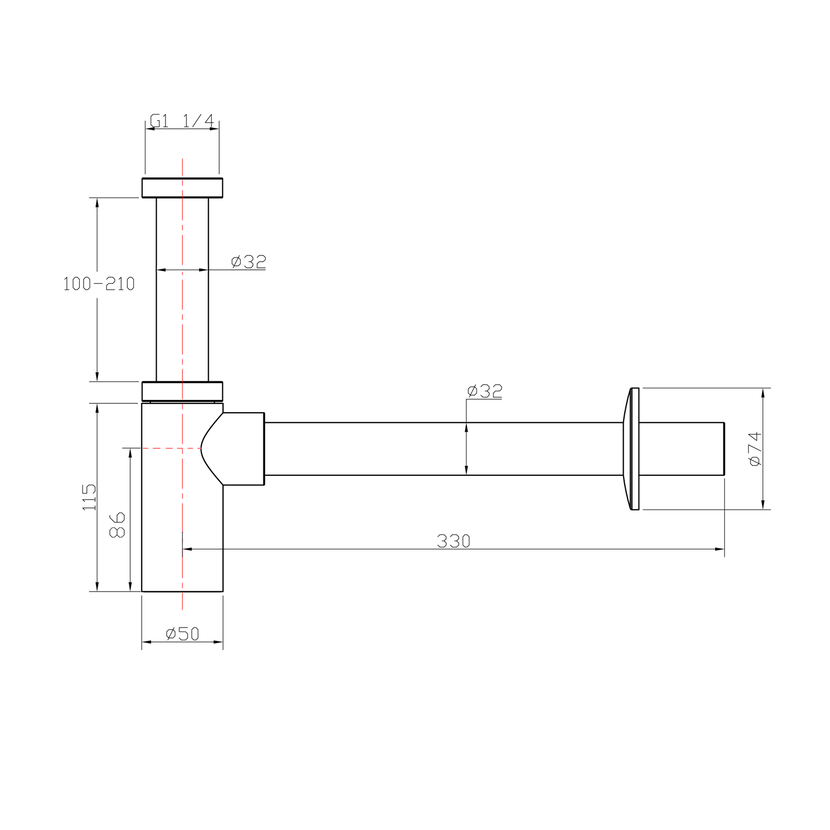 Parametry produktu  Umyvadlový sifon 5/4", odpad 32mm kulatý, chrom
