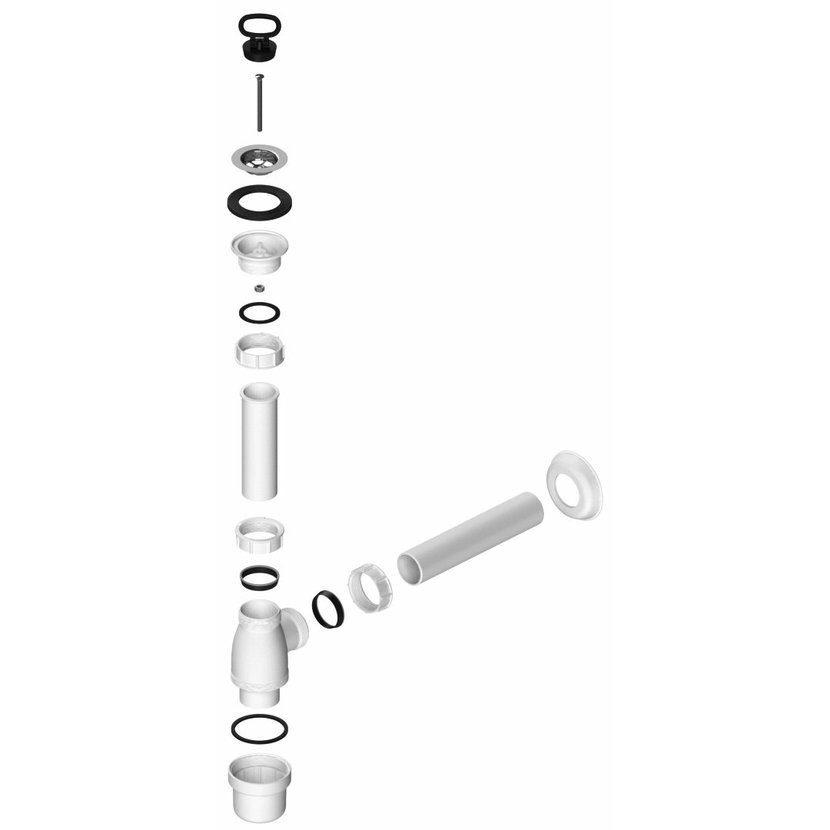 Parametry produktu  Umyvadlový sifon, nerez výpust, zátka s uchem, DN40, bílá