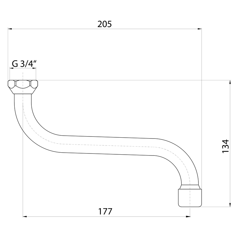 Parametry produktu  Universální výtokové ramínko k baterii, 177mm, typ-S, chrom