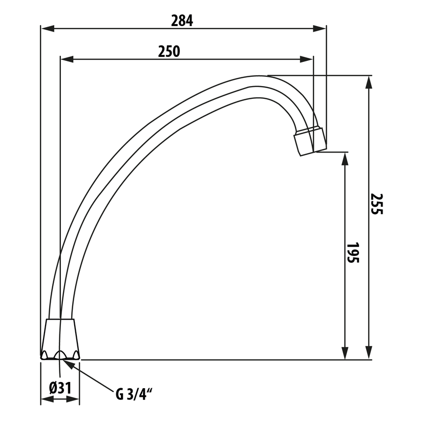 Parametry produktu  Universální výtokové ramínko k baterii, 250mm, typ-J, chrom