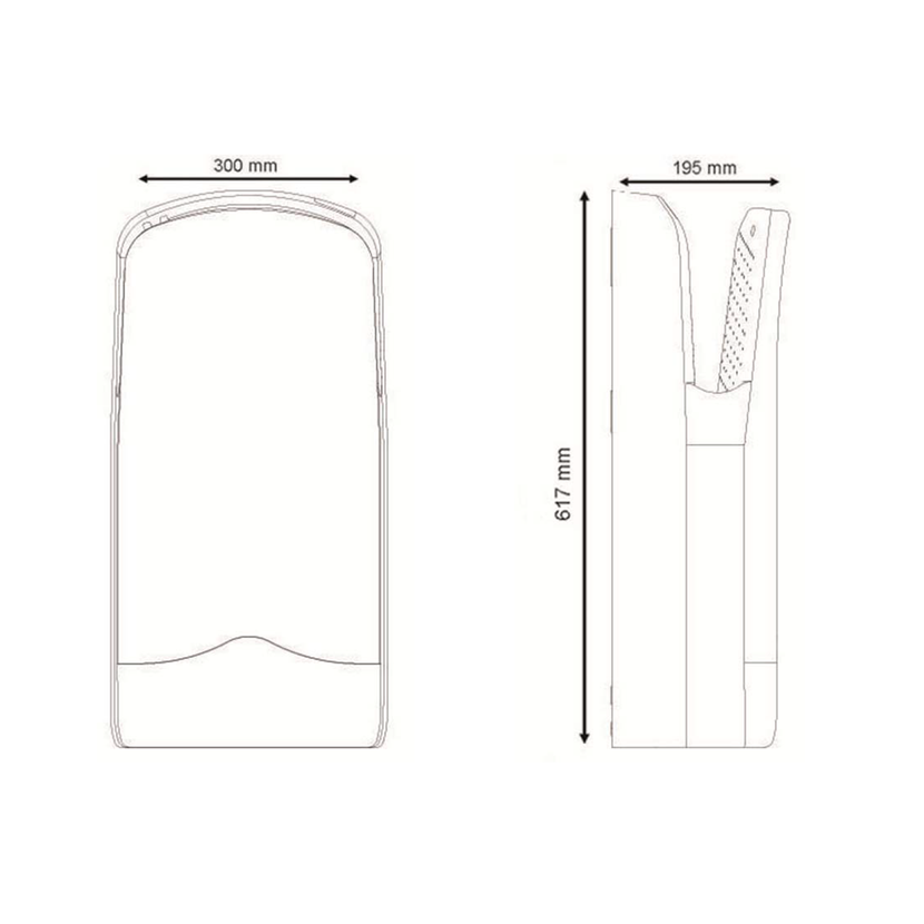 Parametry produktu  V-JET bezdotykový tryskový osoušeč rukou 220-240V, 1760W, 300x195x617mm, bílá