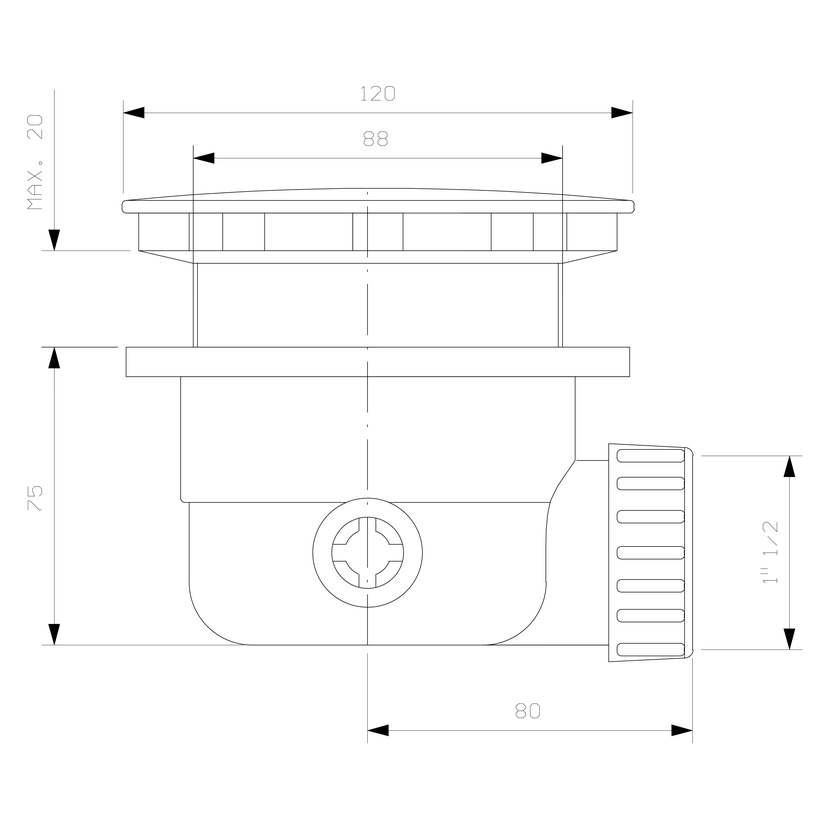 Parametry produktu  Vaničkový sifon, průměr 90mm, DN40, krytka bronz