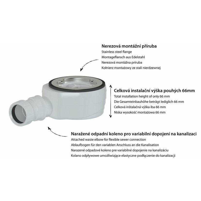 Parametry produktu  Vaničkový sifon, průměr 90mm, DN40, nízký