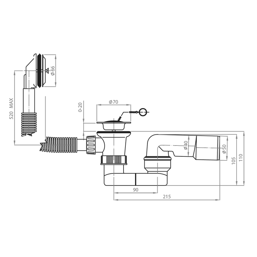 Praktický vanový sifon, 6/4", DN40/50, s flexi odpadem.