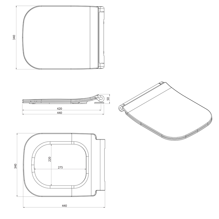 Soft Close (pomalé sklápění), Easy Take (odnímatelné sedátko), SLIM (tenké)