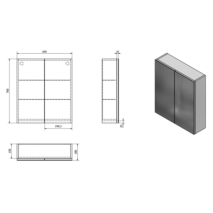 Parametry produktu  VEGA galerka, 60x70x18cm, bílá