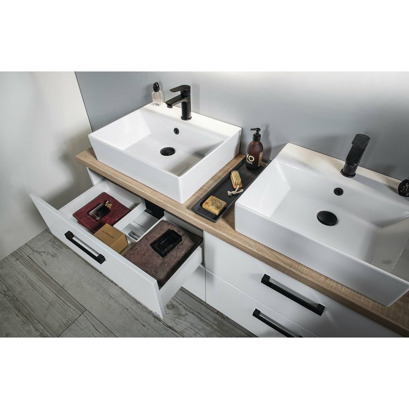 Desky pod umyvadlo jsou dodávány bez vyvrtaných otvorů pro baterii a odpad.