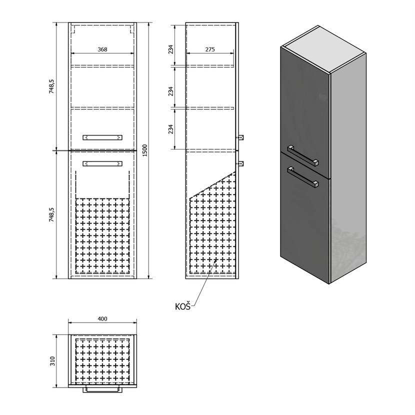 Parametry produktu VEGA skříňka vysoká s košem, 40x150x31cm, bílá