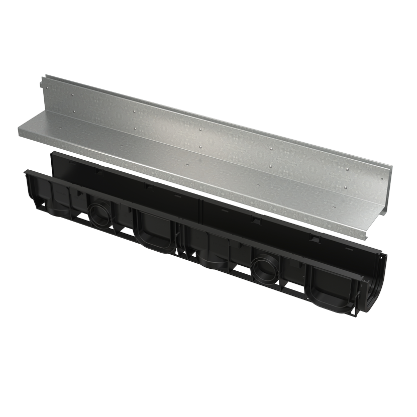 Venkovní žlab štěrbinový s asymetrickým nástavcem 100 mm, pozinkovaná ocel AVZ101-R121