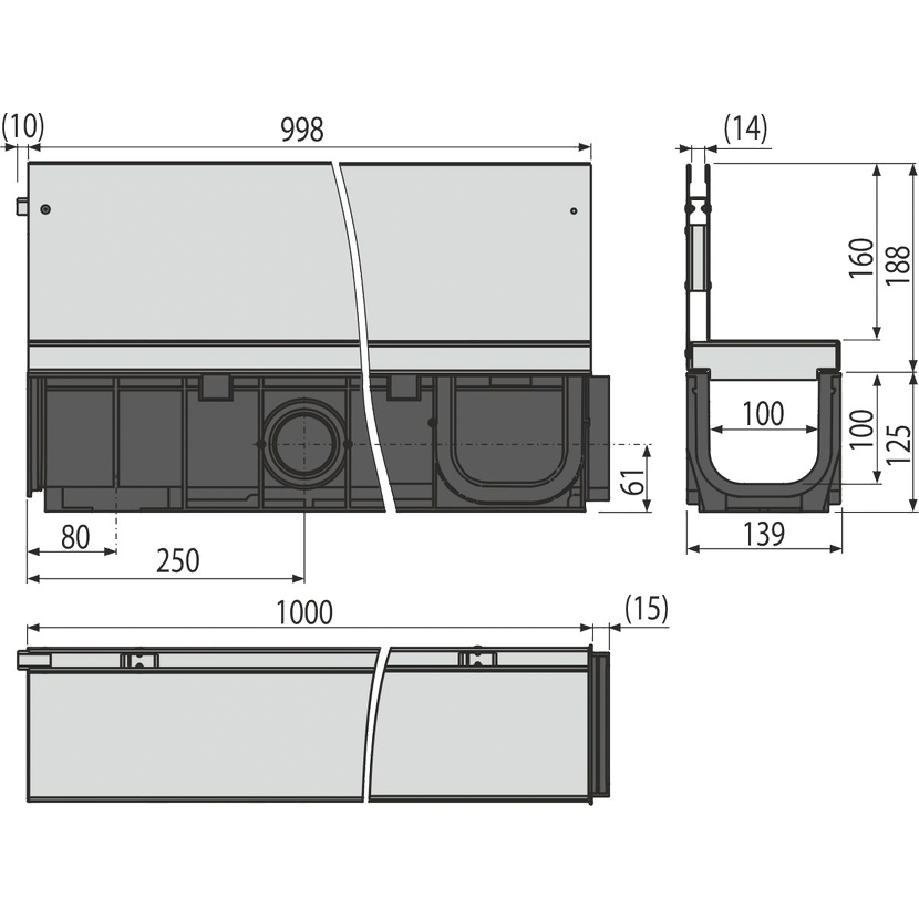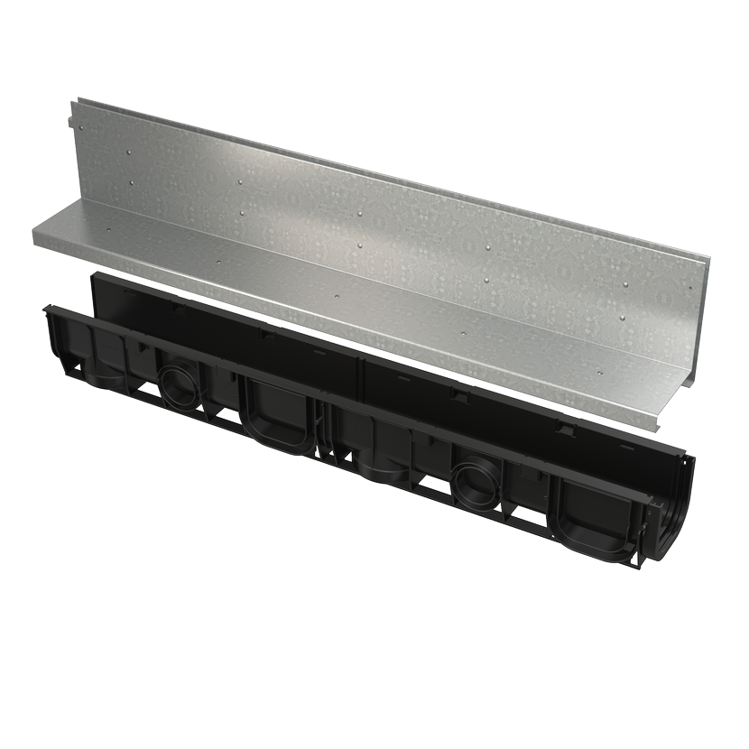 Venkovní žlab štěrbinový s asymetrickým nástavcem 160 mm, pozinkovaná ocel AVZ101-R122