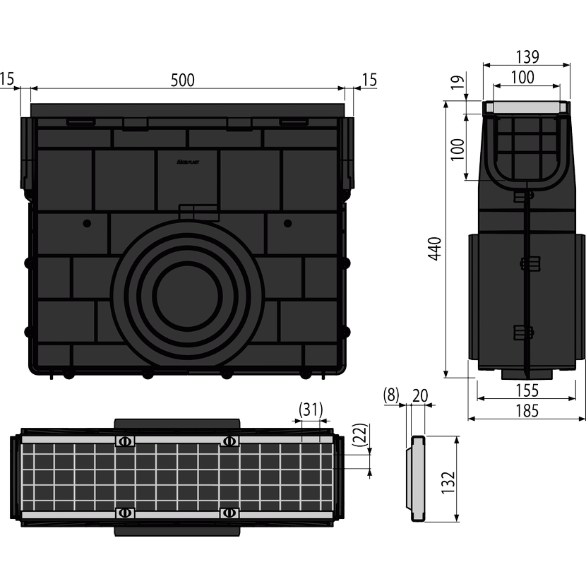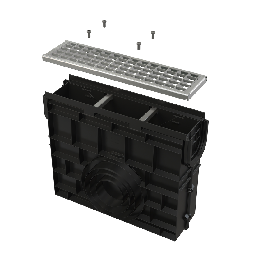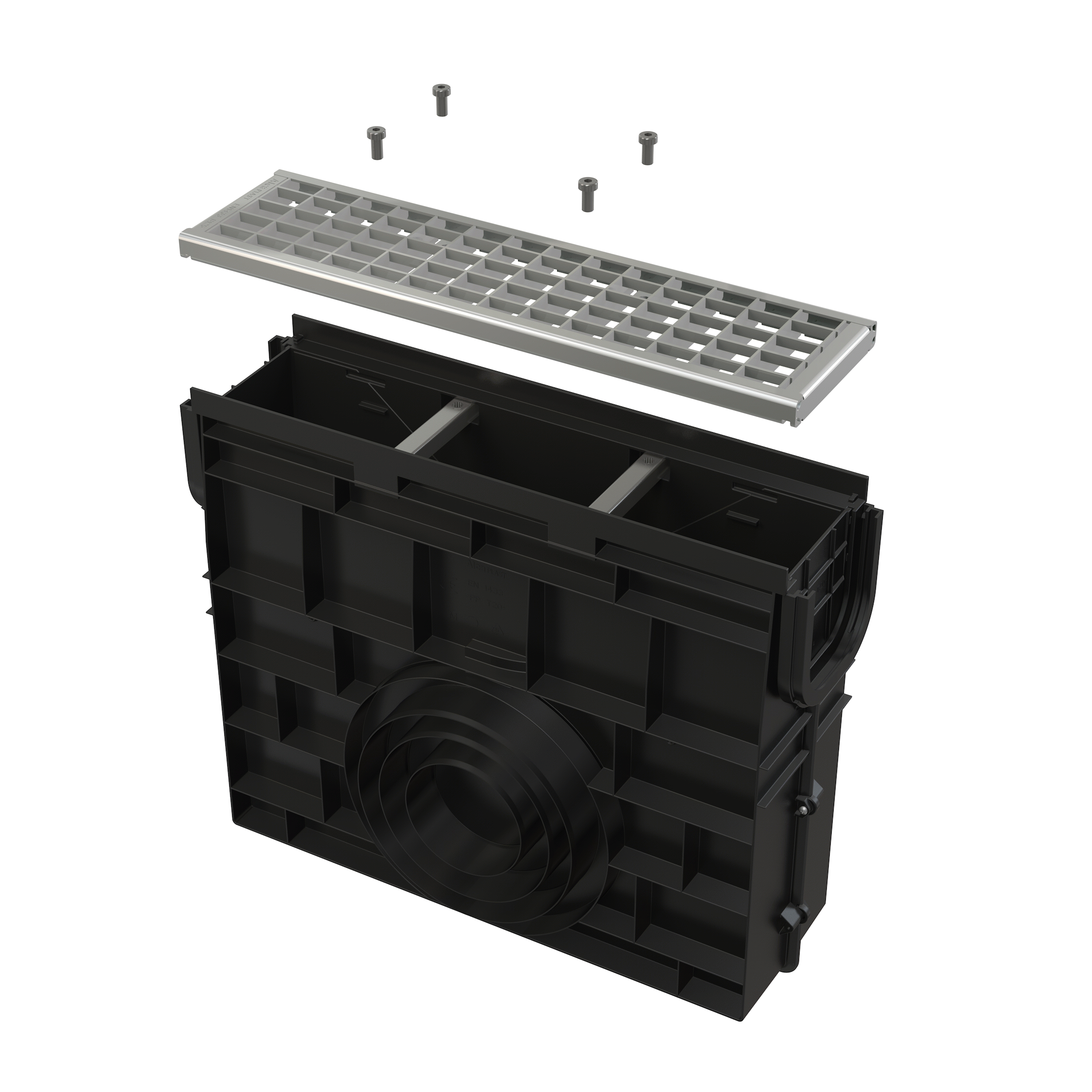• Pozinkovaný mřížkový rošt – fixovaný ve žlabu pomocí čtyř kusů nerezových šroubů, velikost ok 22×31 mm