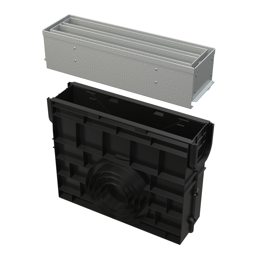 Venkovní žlabová vpust štěrbinová se symetrickým reviz. nástavcem 100 mm, pozinkovaná ocel