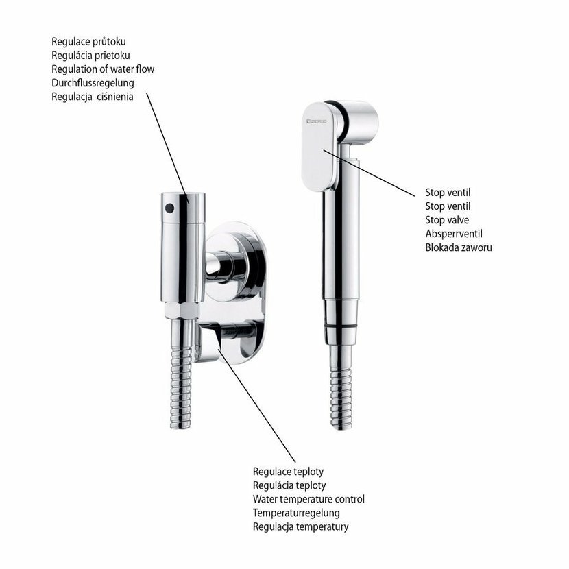 Parametry produktu  Ventil pro bidetové spršky, s hadicí 120cm, chrom