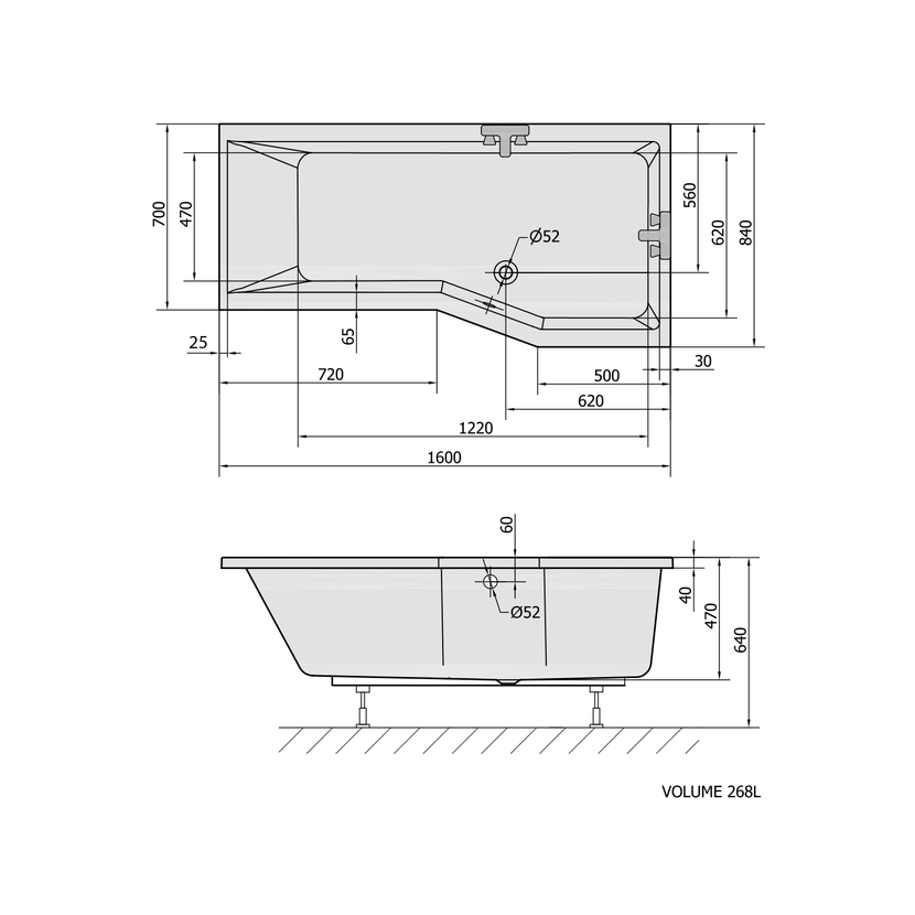 Parametry produktu  VERSYS R asymetrická vana 160x84x70x47cm, bílá
