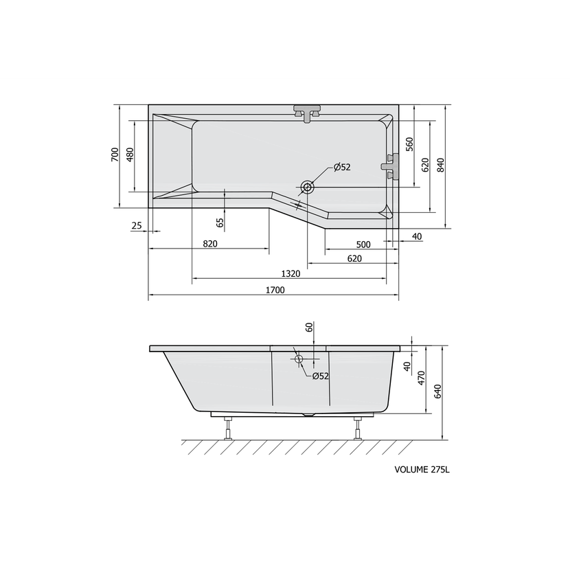 Parametry produktu  VERSYS R asymetrická vana 170x84x70x47cm, bílá