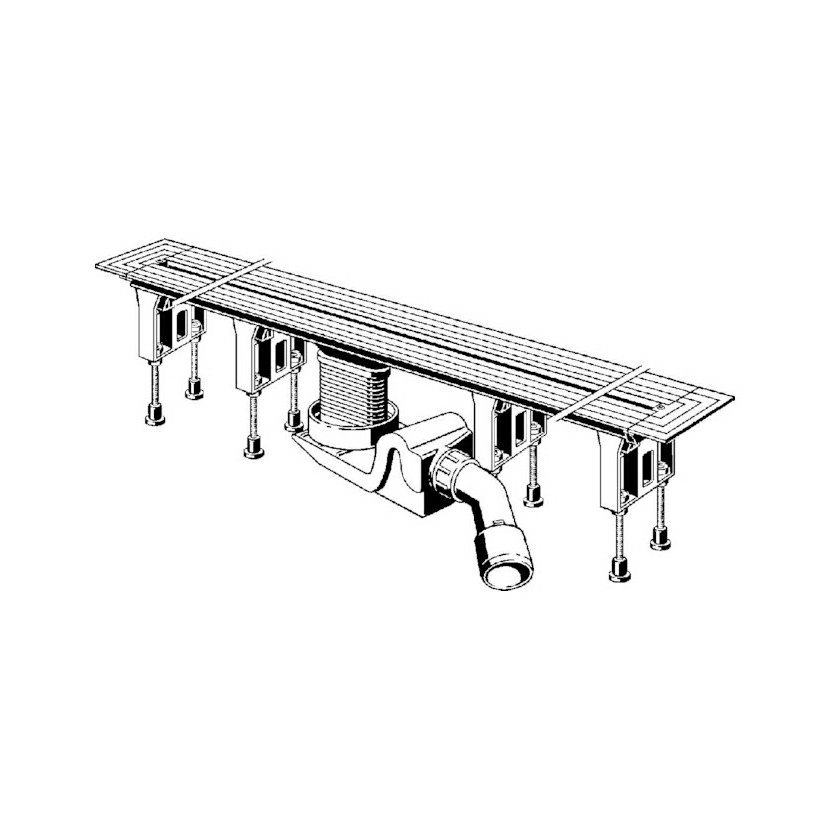 - sada nastavitelných podpěr, uzavírací víčka, odtoková souprava s dobrými čisticími vlastnostmi, výškově nastavitelný držák můstkového roštu, tvarovka pro výškové vyrovnání, utěsňovací příruba, utěsňovací příslušenství, pomůcka pro zkrácení
