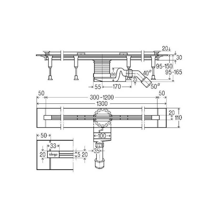 Parametry produktu VIEGA Advantix Vario sprchový žlab 300-1200 mm 686277