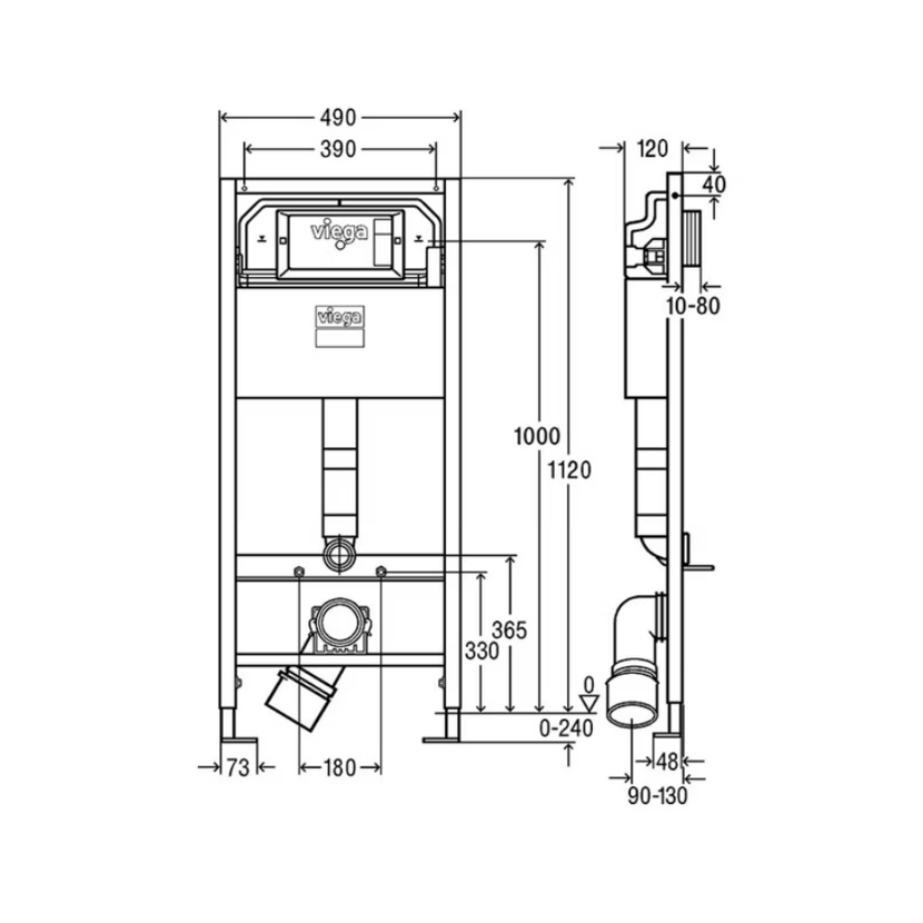 Parametry produktu  VIEGA Prevista Dry WC prvek předstěnový splachovací systém 1120x490 mm 771973