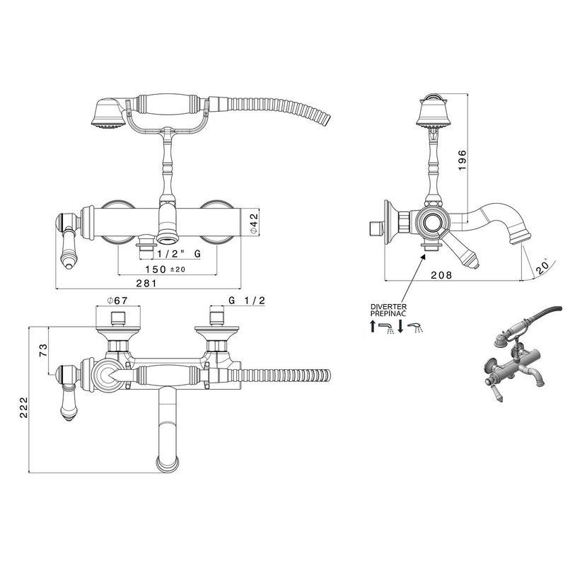 Parametry produktu VIENNA nástěnná vanová baterie kompletní, bronz