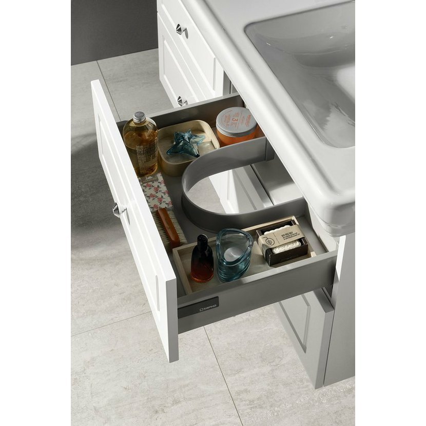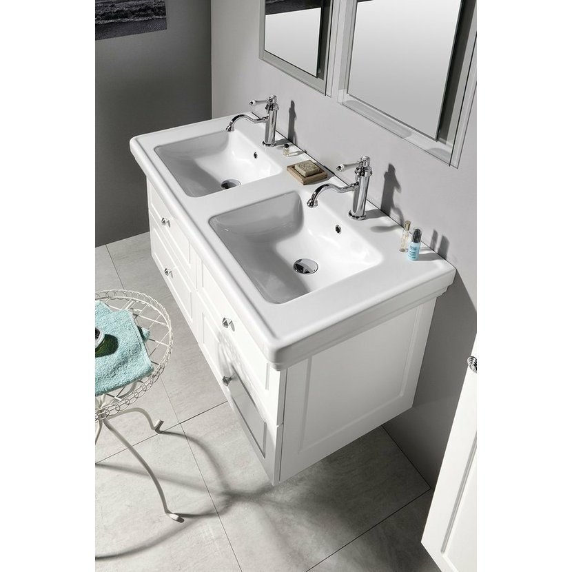 Keramická umyvadla od italského výrobce GSI k těmto skříňkám jsou nabízena v šířkách 60 až 125 cm.