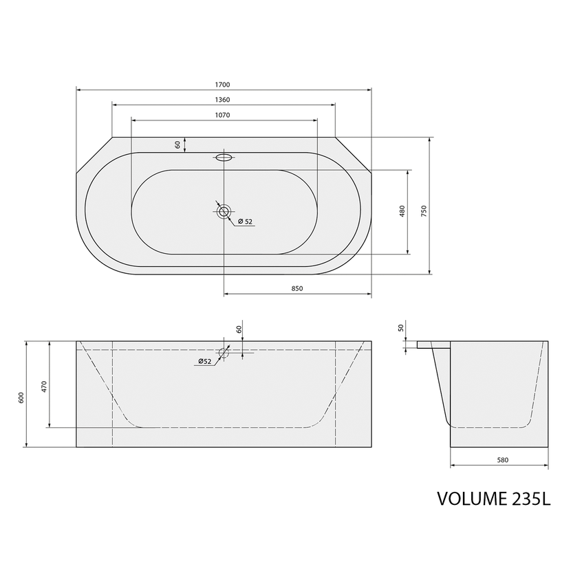 Parametry produktu VIVA A MONOLITH rohová vana 170x75x60cm, bílá