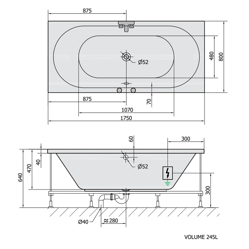 Parametry produktu VIVA B hydromasážní vana, 175x80x47cm, Attraction Hydro-Air, chrom
