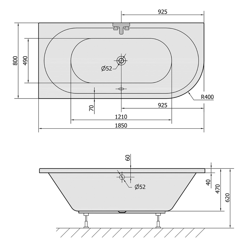 Parametry produktu  VIVA L asymetrická vana 185x80x47cm, bílá