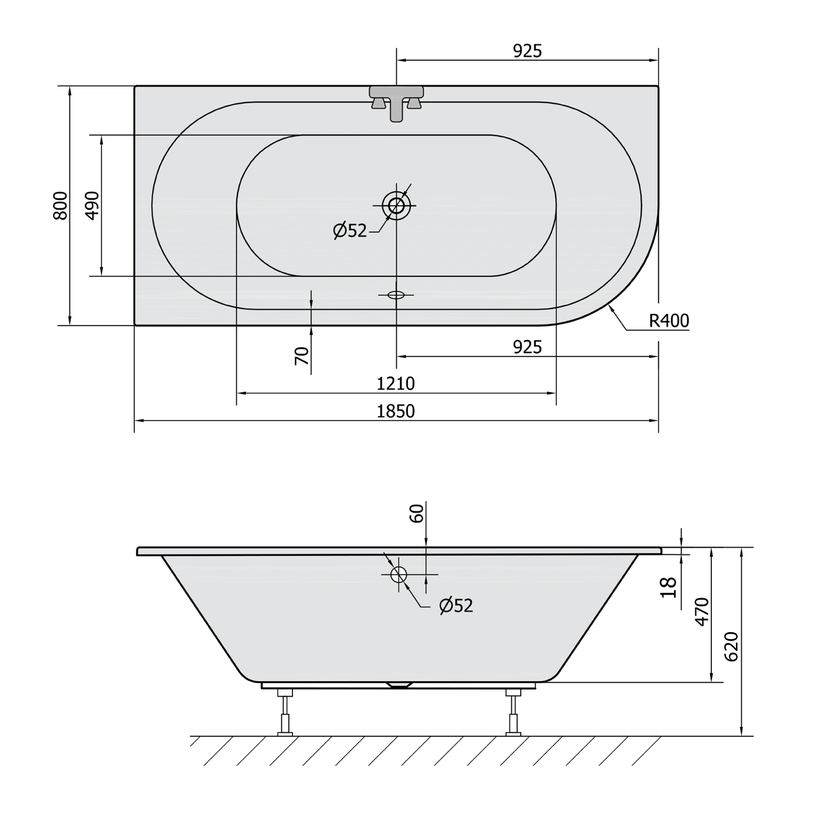 Parametry produktu  VIVA L SLIM asymetrická vana 185x80x47cm, bílá