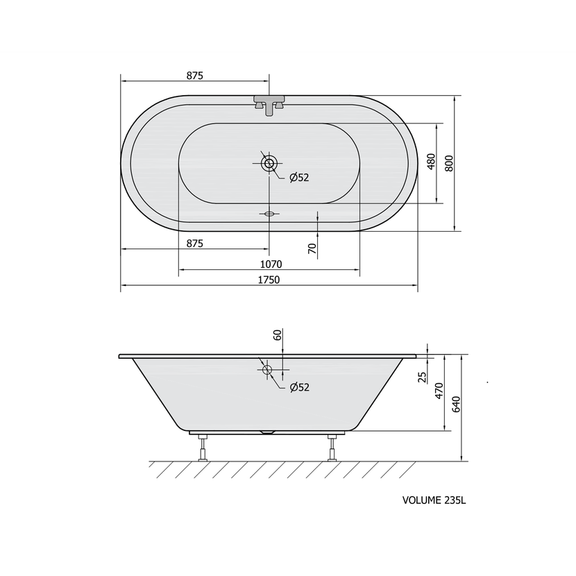 Parametry produktu  VIVA O oválná vana 175x80x47cm, bílá