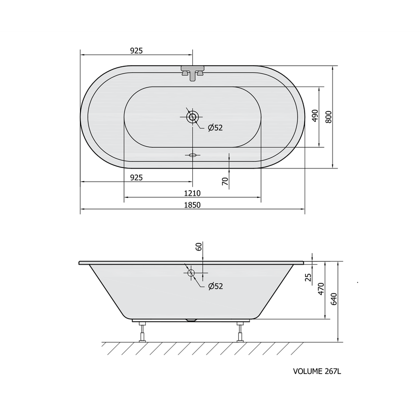 Parametry produktu  VIVA O oválná vana 185x80x47cm, bílá