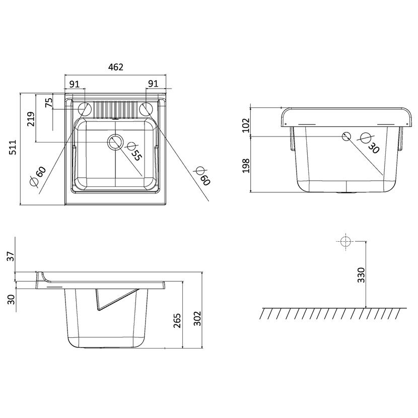 Parametry produktu  Výlevka na skříňku 45x50cm, plast bílá
