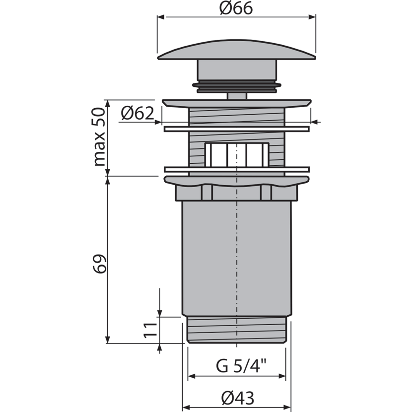 Výpust umyvadlová CLICK/CLACK 5/4" celokovová s přepadem, velká zátka,GOLD-kartáčovaný mat