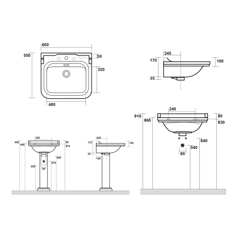Parametry produktu WALDORF keramické umyvadlo 60x55cm, 3 otvory, bílá
