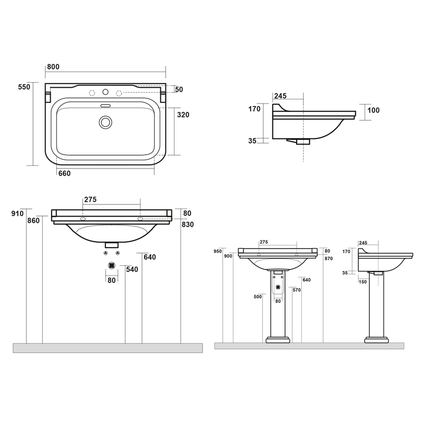 Parametry produktu WALDORF keramické umyvadlo 80x55cm, bílá