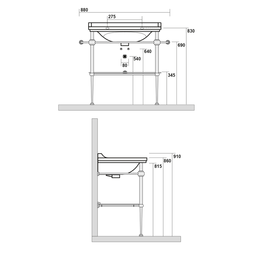 Parametry produktu WALDORF konstrukce pro umyvadlo 80cm se skleněnou poličkou, chrom