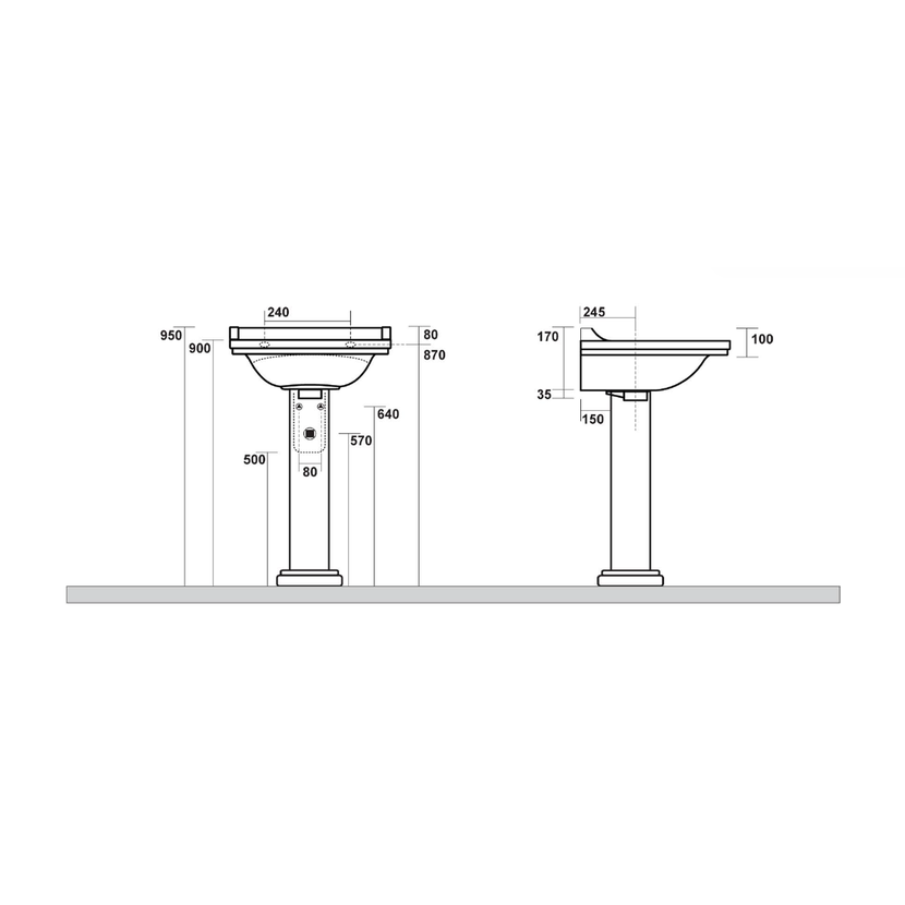 Parametry produktu WALDORF universální keramický sloup k umyvadlům 60, 80cm, černá mat