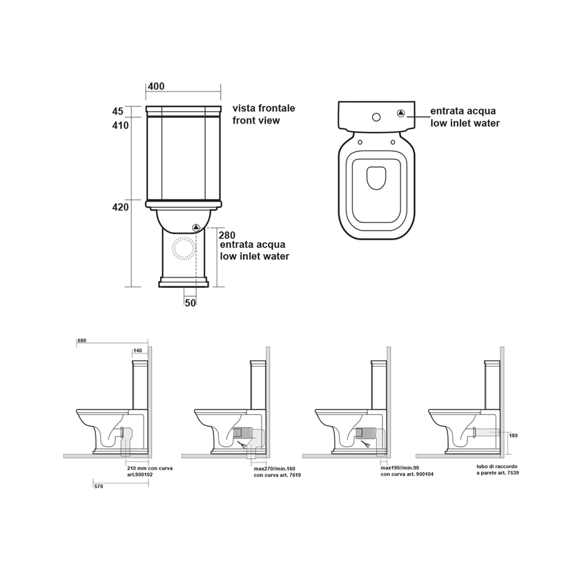 Parametry produktu WALDORF WC kombi, spodní/zadní odpad, bílá-bronz