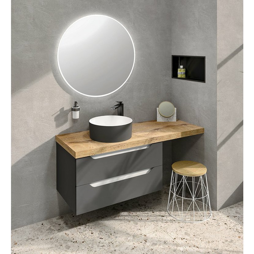 WAVE nabízíme v šesti variantách šířek umyvadlových skříněk, včetně dvojumyvadlových. Na skříňky lze použít i desky z Rockstonu, z kompozitu (HPL laminát) nebo AVICE desku a vybrat si ze široké nabídky umyvadel na postavení. V nabídce jsou i doplňkové vysoké skříňky, které společně s umyvadlovou skříňkou tvoří harmonický celek.