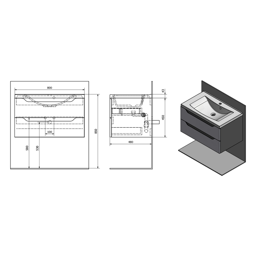 Parametry produktu WAVE umyvadlová skříňka 79,7x45x47,8cm, bílá/mali wenge