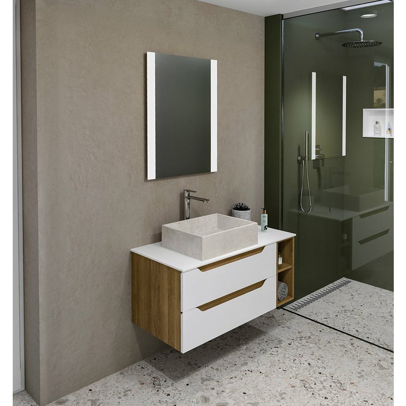 Designově zdařilá série koupelnového nábytku WAVE vyniká nadčasovou elegancí. Jednotícím prvkem je vlna, která probíhá čelní plochou nábytku, umožňuje pohodlné otevírání a zároveň koresponduje s vnitřní částí umyvadla LUCIOLA z litého mramoru. WAVE nabízíme v šesti variantách šířek umyvadlových skříněk, včetně dvojumyvadlových. Na skříňky lze použít i desky z Rockstonu, z kompozitu (HPL laminát) nebo AVICE desku a vybrat si ze široké nabídky umyvadel na postavení. V nabídce jsou i doplňkové vysoké skříňky, které společně s umyvadlovou skříňkou tvoří harmonický celek. Nábytek je dodáván ve smontovaném stavu, připraven k okamžité instalaci. Nábytek instalujte na rovnou stěnu. Při zkroucení korpusu skříňky může dojít k poruše funkce dovíracích mechanismů. Nevystavujte nábytek trvalé vlhkosti a styku s vodou. Po použití koupelnu řádně odvětrejte. Proti případnému zatékání do skříňky použijte silikonový tmel.