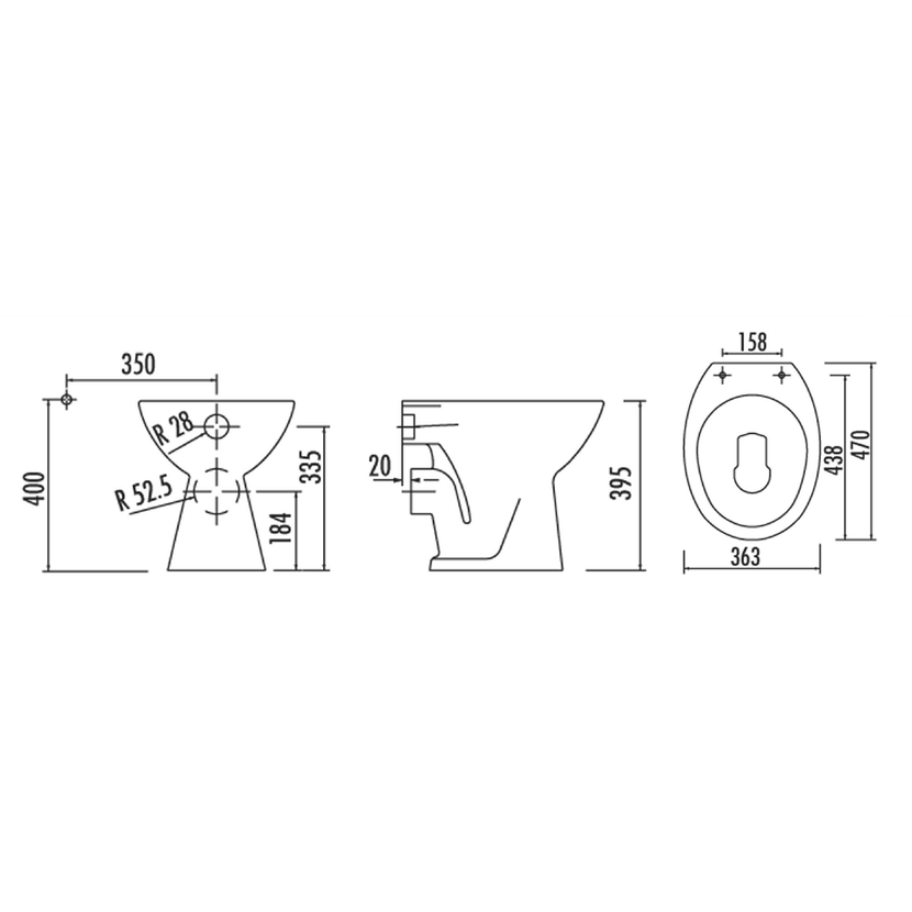 WC mísa stojící, 36x47cm, zadní odpad, bílá