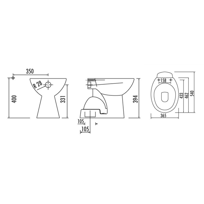 Parametry produktu  WC mísa stojící, 36x54cm, spodní odpad, bílá