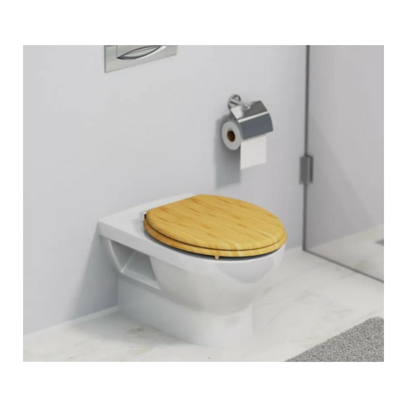 Elegantní WC sedátko s bambusovým vzhledem dodá vaší koupelně teplý, přírodní styl a snadno se sladí s dalšími bambusovými doplňky. Vnesete tak do své koupelny harmonii a nádech exotiky.
