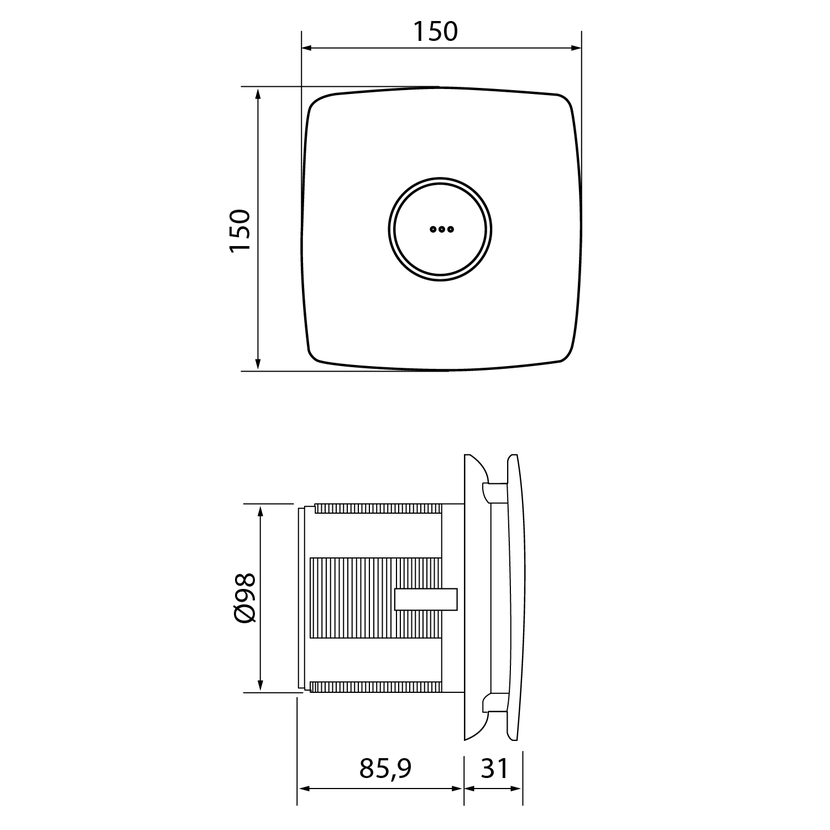Parametry produktu  X-MART 10T koupelnový ventilátor axiální s časovačem, 15W, potrubí 100mm, bílá