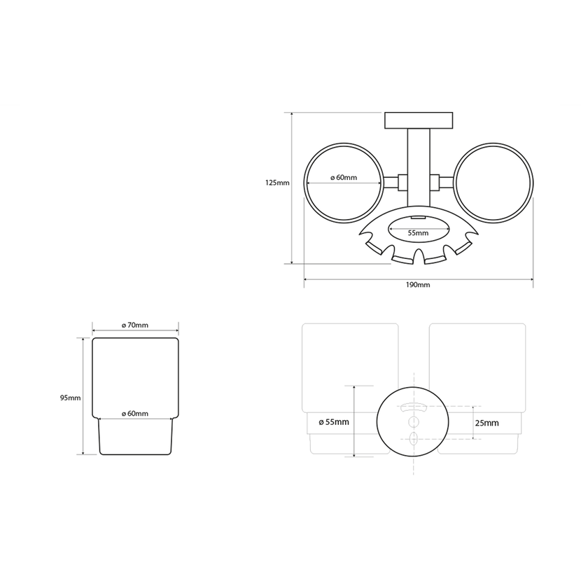 Parametry produktu X-ROUND držák kartáčků včetně sklenic, mléčné sklo, chrom