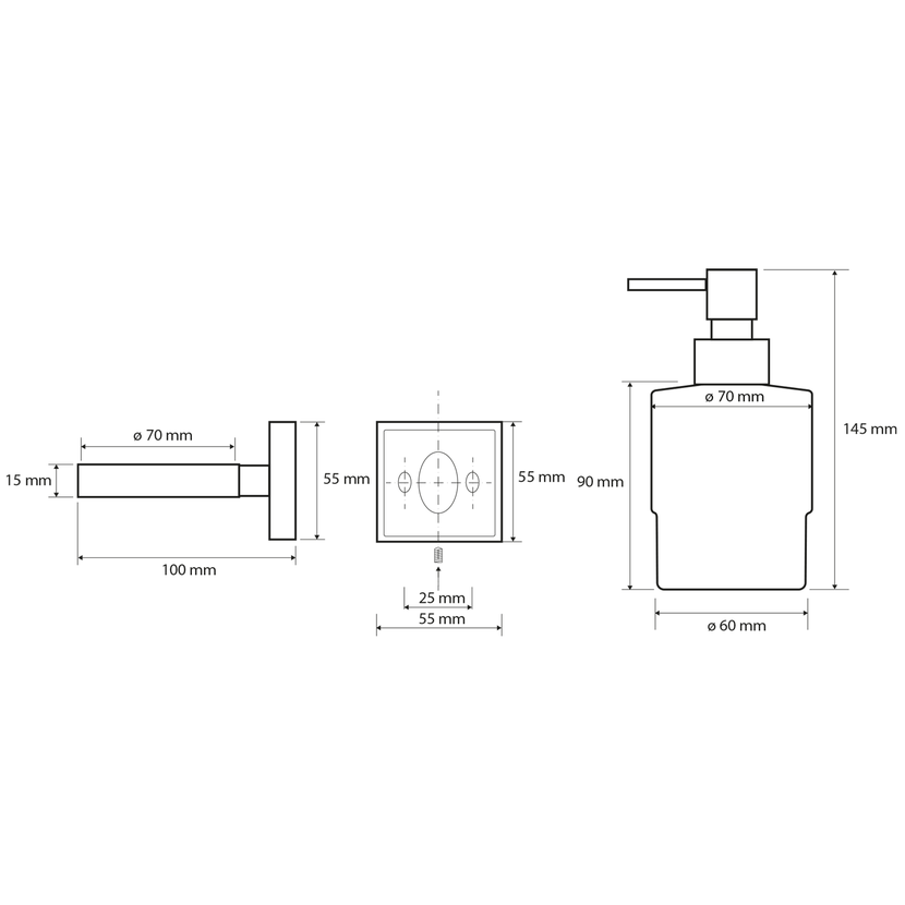 Parametry produktu X-SQUARE dávkovač mýdla 200ml, mléčné sklo, chrom