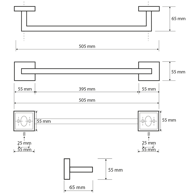 Parametry produktu X-SQUARE držák ručníků 450mm, chrom