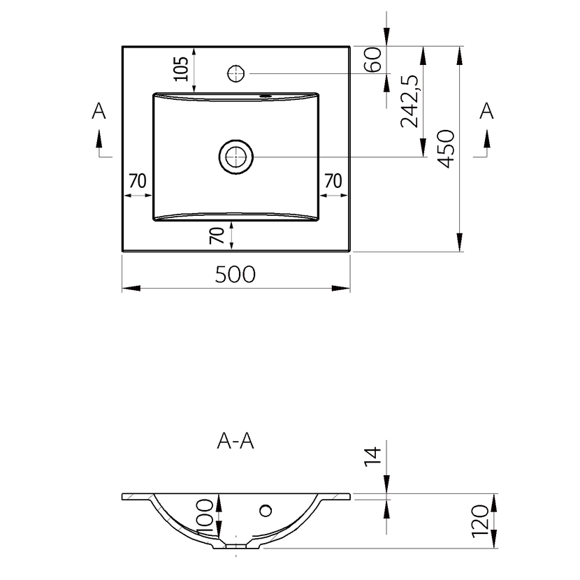 Parametry produktu  YUKON umyvadlo, litý mramor, 50x45cm, bílá