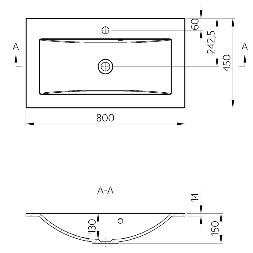 Parametry produktu  YUKON umyvadlo, litý mramor, 80x45cm, bílá